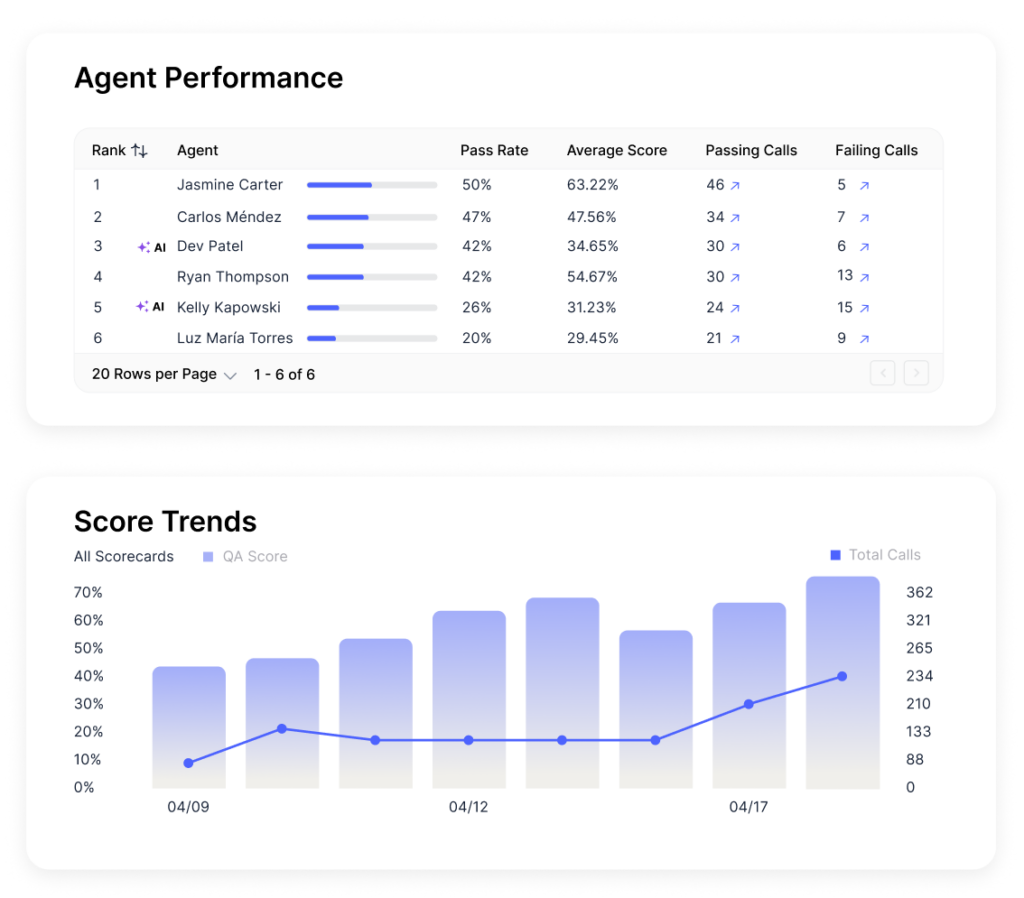 Gain complete visibility into performance by auto-scoring every interaction