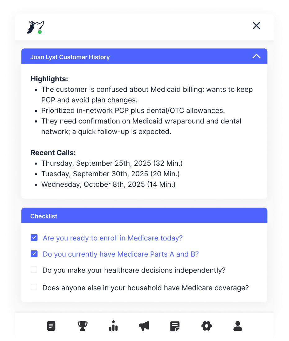 Solve your customers’ problems faster with industry-leading AI. No manual call scoring, no random listening, and no holds to look up information.